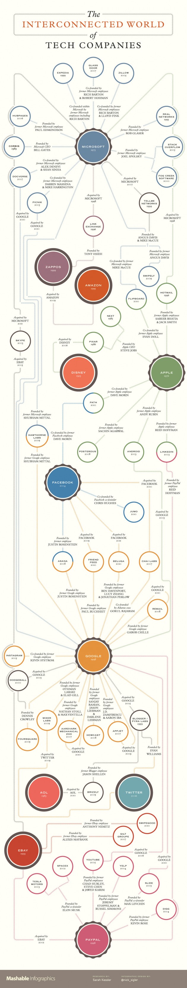 So you really thought that your family tree was all over the place uh? well, this Infographic shows you the family tree of technology companies. It shows you exactly how the big tech giants have influenced other minor companies to spring up into the internet world bringing services that normally would not be available without the assistance of their “parent” companies. Via: Mashable