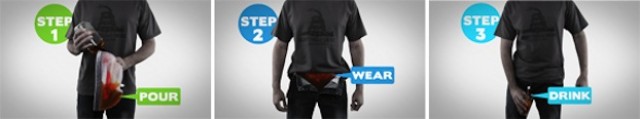 Oh the things we men will do for alcohol. Not long ago we had an article about the Wine Rack, a bra that allowed women to fill up their bras with wine or beer while at the same time giving them a boost in confidence by making their chest go from A’s to D’s in a matter of seconds. The wine rack was actually pretty cool, plus the small tube that allowed you to release the wine was hidden on the side of the shirt, meaning people didn’t suspect a thing when you were pouring your self another drink. The bladder design however, is taking things to an awkward extreme. You’re bound to get caught by someone who sees you pee into a cup, then sees you drink it again.